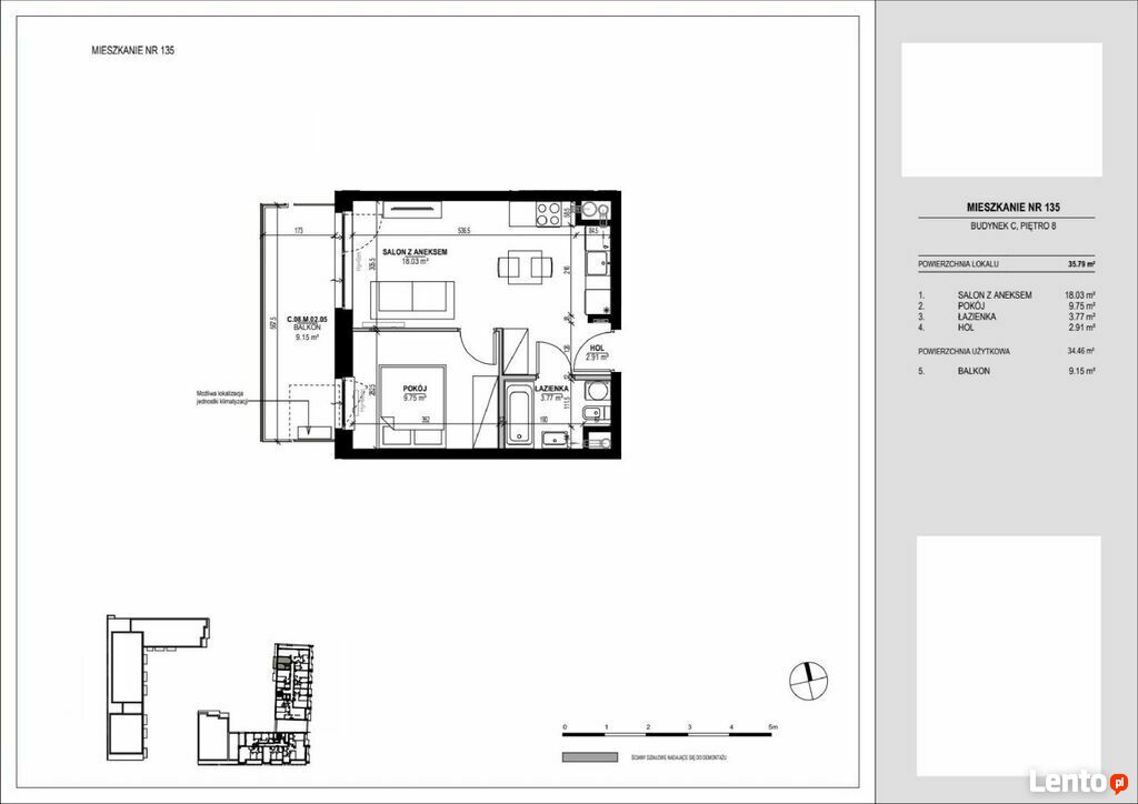 Budynek C - Lokal mieszkalny nr 135, balkon: 9,15 m
