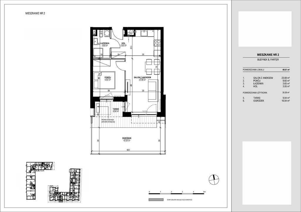 Budynek B - Lokal mieszkalny nr 2, taras: 9,04 m, ogródek: 16,54 m
