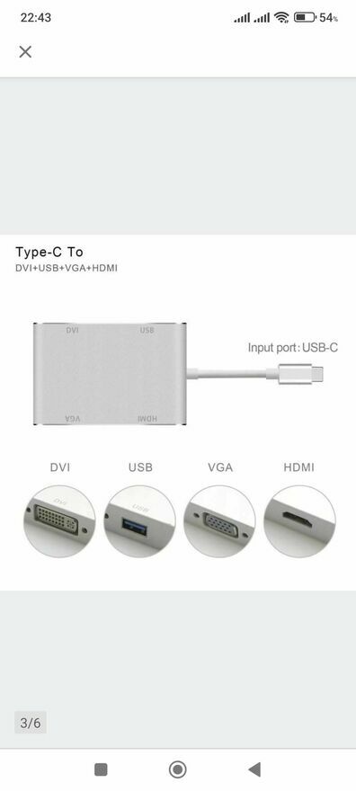 Adapter 4w1 USB Type C USB-C do VGA DVI HDMI USB 3.0 przejściówka.Nowa.
