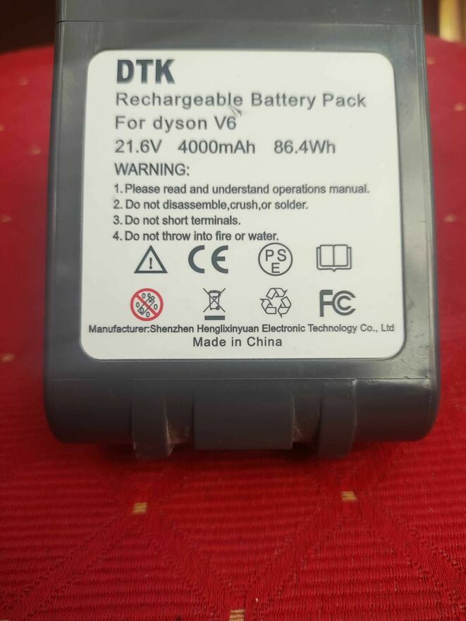 DTK Zamienna bateria do Dyson Odkurzacze V6 SV03 SV05 SV06 SV07 SV09 DC62 DC58 DC59 DC61 DC72 DC74, 21,6V 4000mAhNowa.