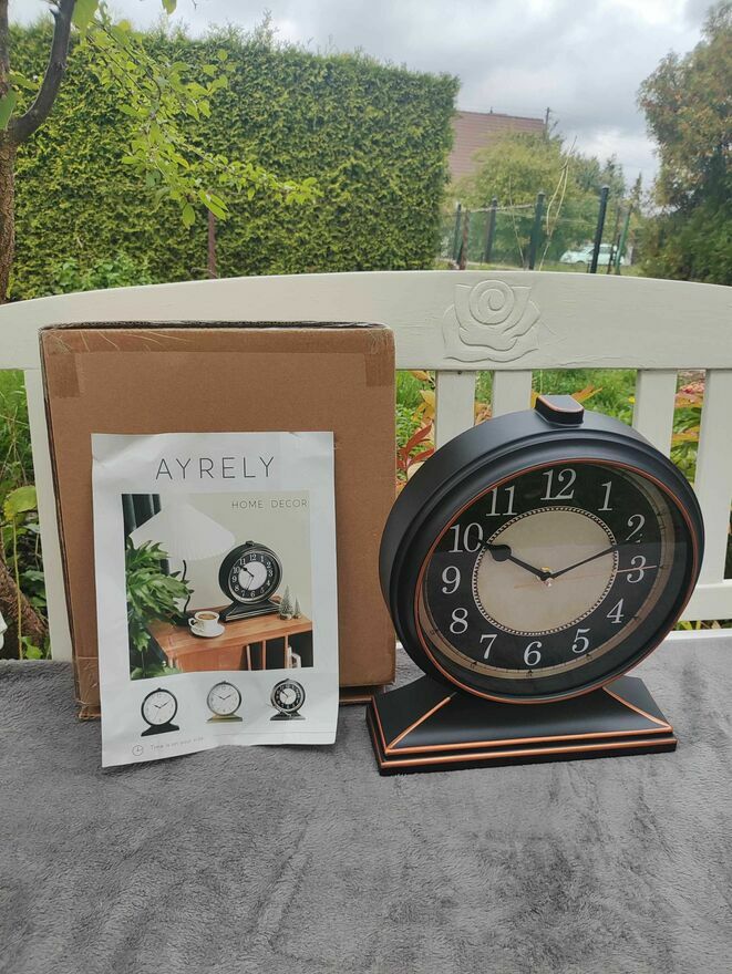 AYRELY Zegar Kominkowy stołowy na kominek vintage cichy zegarek brązowy.Nowy.