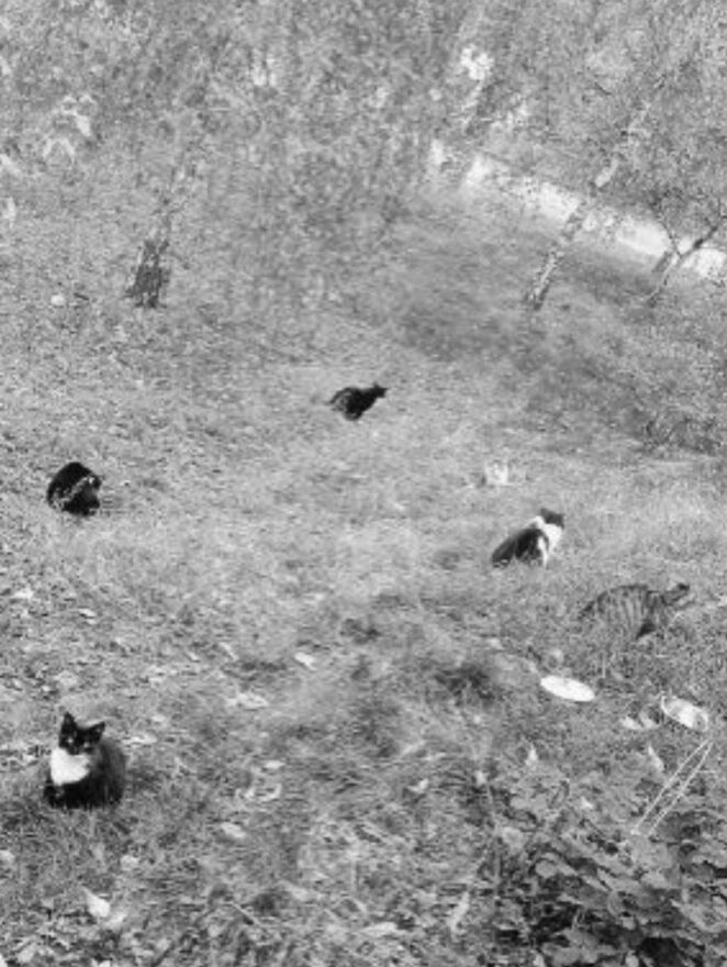 Uprzedzając państwa pytania - kotki są wykastrowane , wysterylizowane. Nie są do adopcji - to typowe dzikuski mieszkające w okolicy.