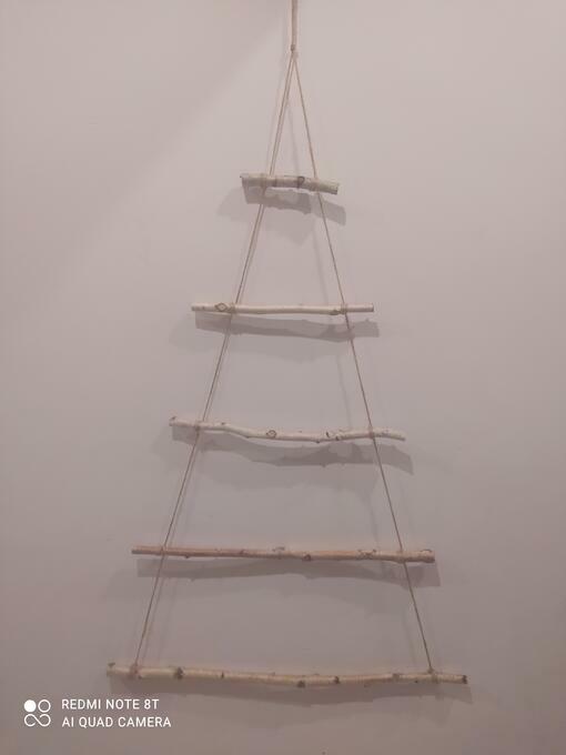 Choinka świąteczna na ścianę ręcznie robiona z brzozy i sznurka jutowego.Do samodzielnego ozdobienia.