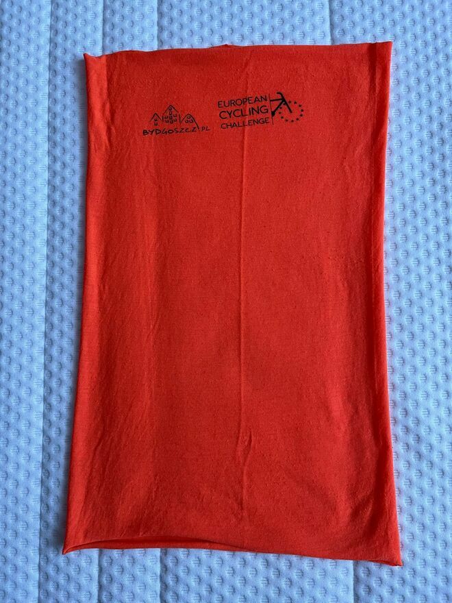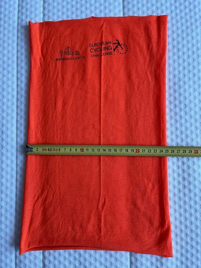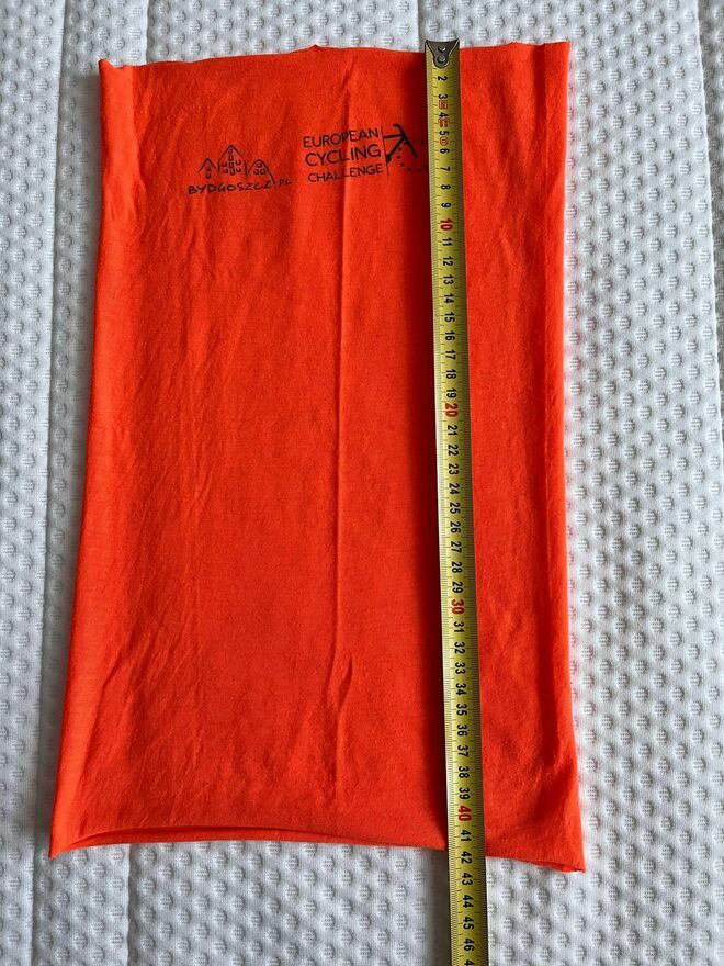 Na sprzedaż Chusta typu buff / komin European Cycling Challange pomarańczowa użyta 1x.Wymiary: ~41cm x ~25cm