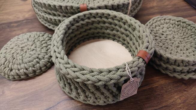 Piękne i stylowe podkładki. Podkładki wytworzone ręcznie ze sznurka bawełnianego. Kolor oliwkowy. Można prać ...