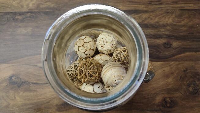 Duży szklany lampion z suszem ozdobnym Wysokość - 26cm Średnica podstawy - 14cm Średnica górnego otworu - ...