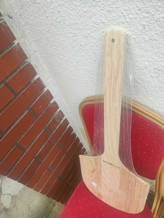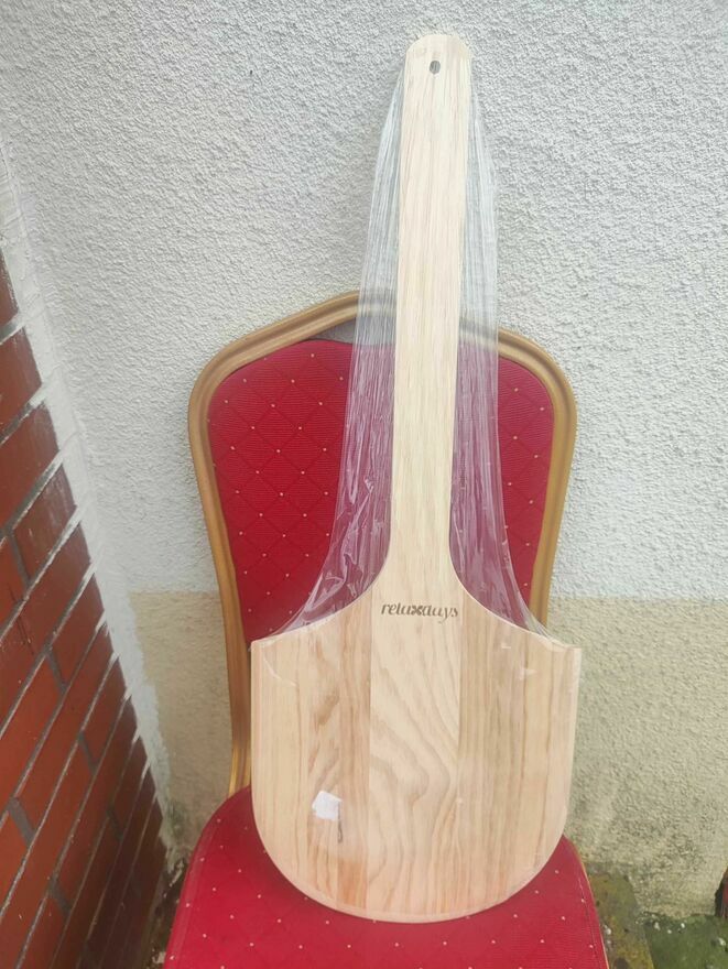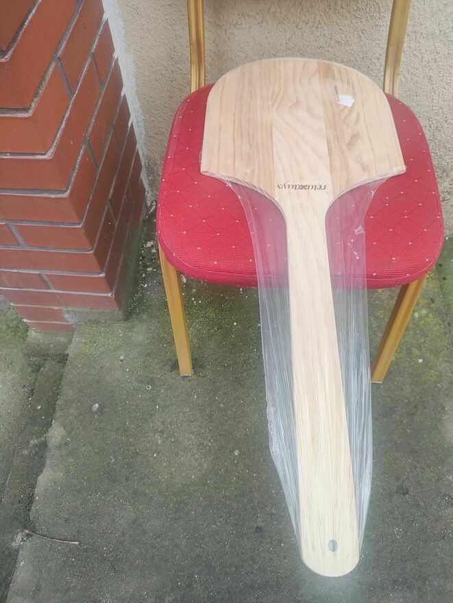 Drewniana deska do krojenia pizzy z uchwytem. Produkt jest nowy, nieużywany. Doskonale sprawdzi się w kuchni do przygotowywania i serwowania pizzy.Nowa.