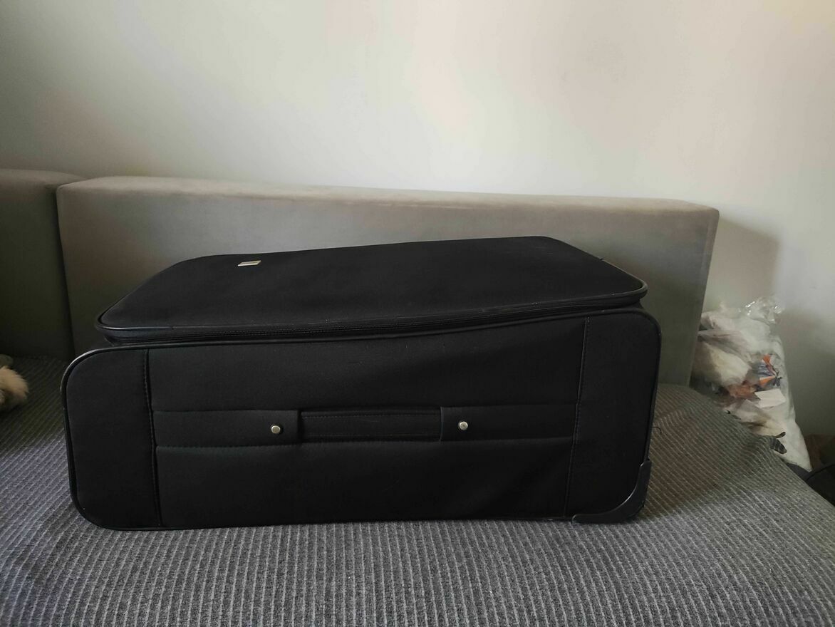 Duża Walizka torba podróżna na kółkach z uchwytem w kolorze czarnym. Praktyczna i wygodna do podróży, idealna dla osób poszukujących przestrzeni na swoje rzeczy. Solidny design zapewnia bezpieczeństwo bagażu podczas podróży.