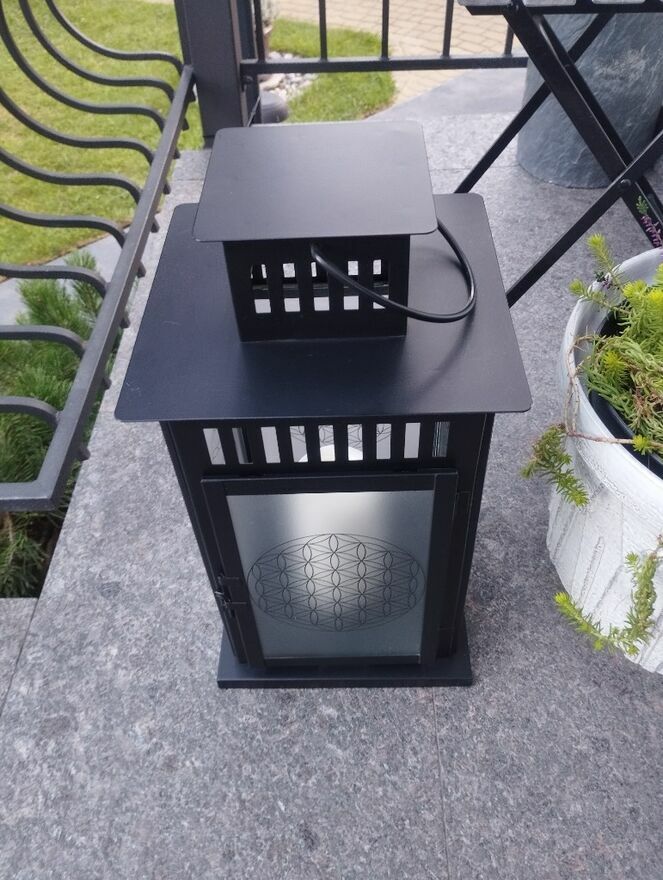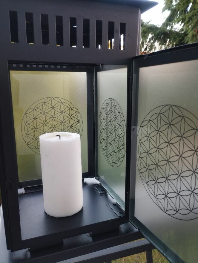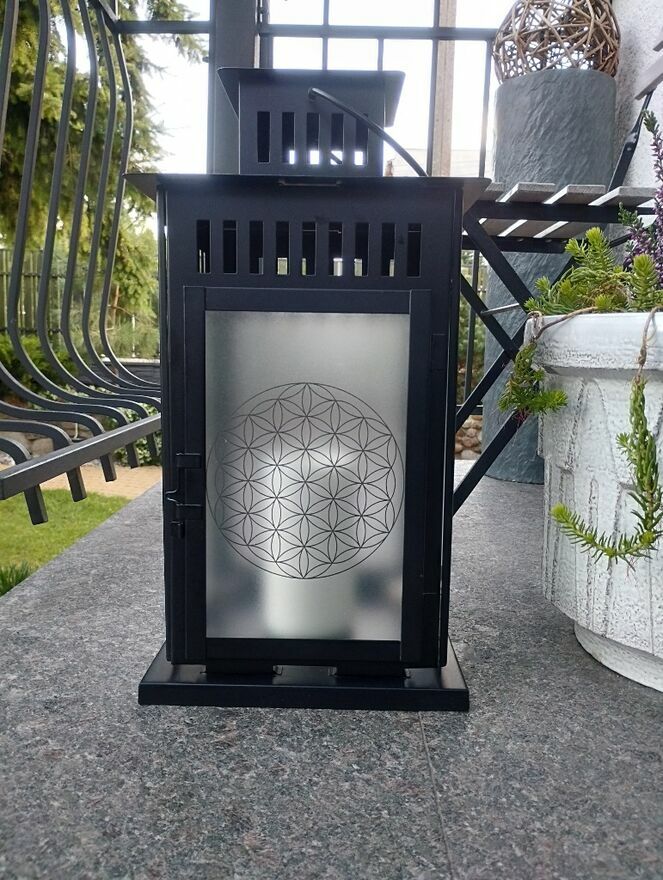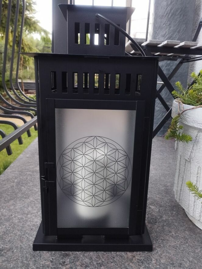 Lampion ozdobny z kwiatem życia.Długość: 24 cm