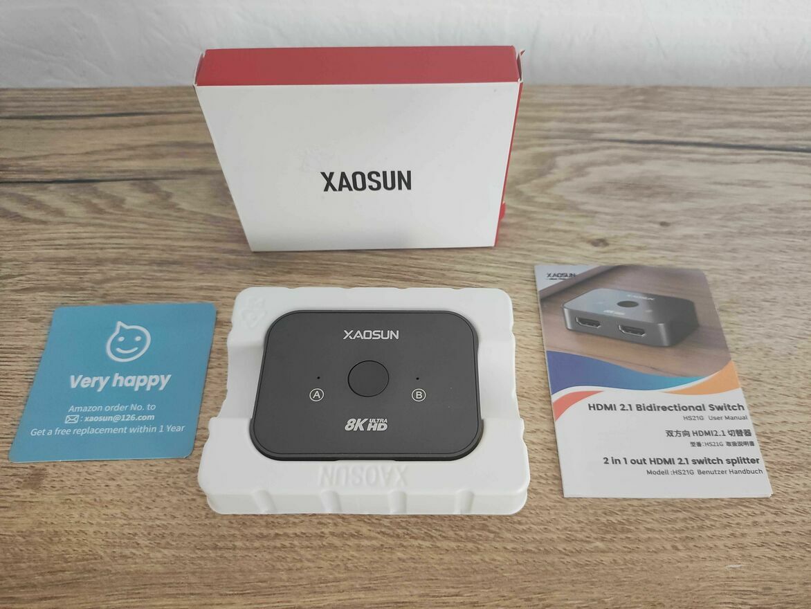 Interfejs HDMI 2.1, szeroka kompatybilność: rozdzielacz HDMI XAOSUN 2 w 1 jest wstecznie kompatybilny z wcześniejszymi wersjami specyfikacji HDMI i może być również używany na istniejących urządzeniach HDMI najnowszej wersji. Dzięki szerokiej kompatybilności można go łatwo używać z konsolą do gier, telewizorem/drążkiem i monitorem.