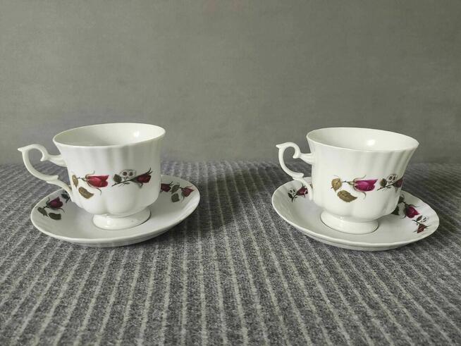 2 Filiżanki i 2 Spodki ( Talerzyki) porcelanowe z porcelany Chodzież. Wszystko sprawne. Cena za całość. Zestaw dwóch ...
