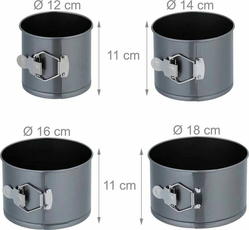 Formy do Pieczenia Foremki RelaxDays odpinanym Bokiem blacha okrągłe.Zestaw czterech okrągłych form do pieczenia z wyjmowanymi bokami marki Relaxdays . Formy wykonane są z wysokiej jakości materiałów, co zapewnia ich trwałość i łatwe czyszczenie. Idealne do pieczenia ciast, babeczek i innych wypieków.