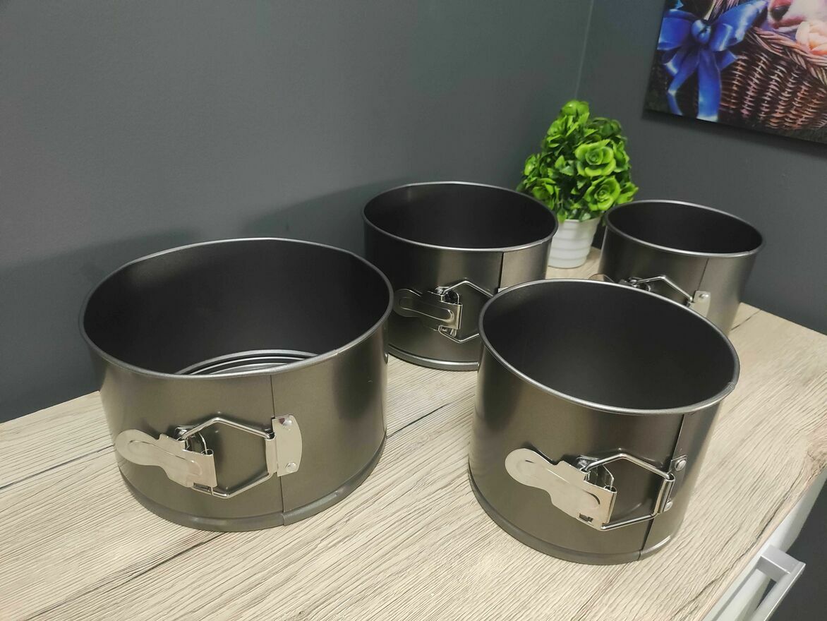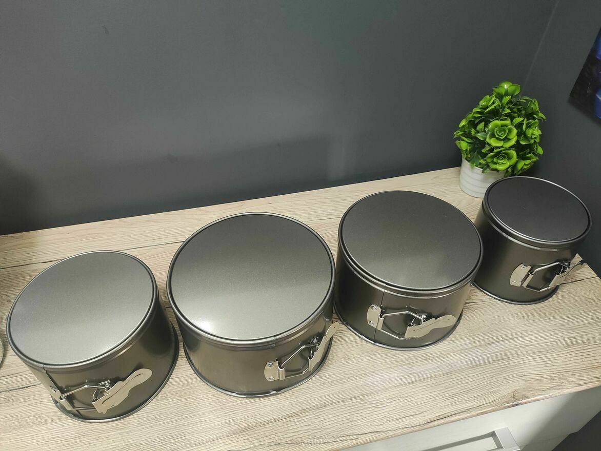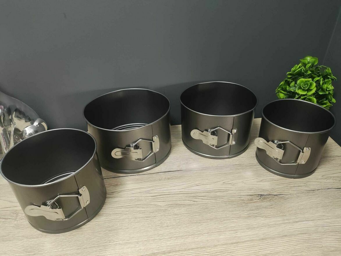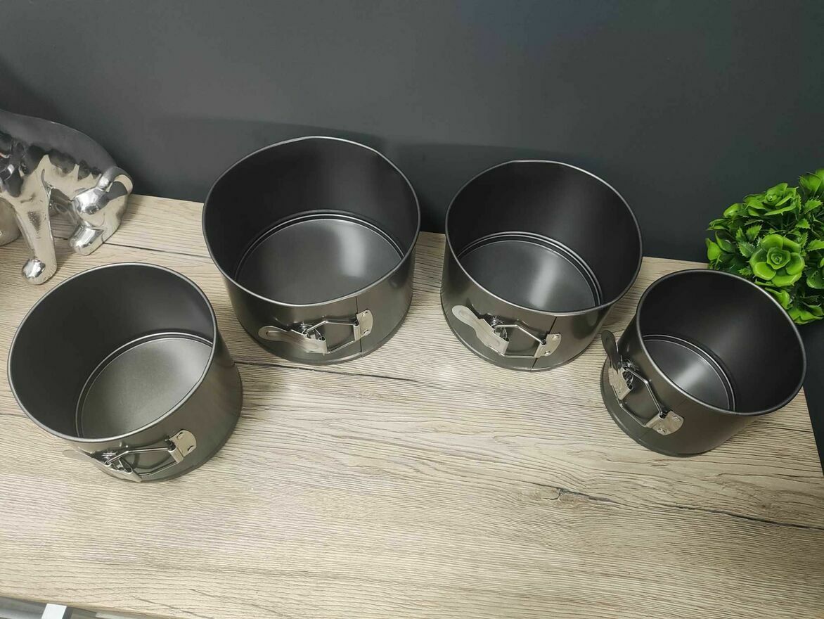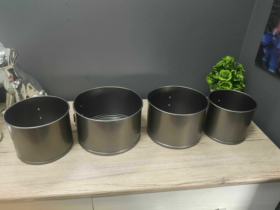 Chcesz zaskoczyć Twoich bliskich pachnącymi wypiekami? Dzięki naszym okrągłym formom do pieczenia stworzysz pyszne ciasto lub tort. Zestaw 4 blach w różnych rozmiarach umożliwia wybór właściwej wielkości ciasta do liczby gości. Możesz również skusić się na przygotowanie wielowarstwowego tortu. Okrągłe formy sprawdzi się idealnie do ciast takich jak np. babka, torty i czekoladowe brownie. Nasze blaszki posiadają klamry na ścinkach, dzięki czemu z łatwością wyjmiesz z nich ciasto.