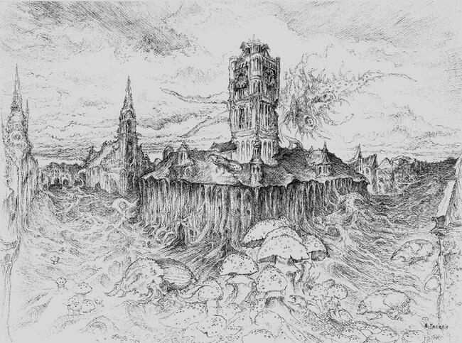 Minas Morgul - rysunek piórkiem na papierze nawiązujący do twórczośc J.R.R.Tolkiena na papierze wykonany przez Andrzeja ...