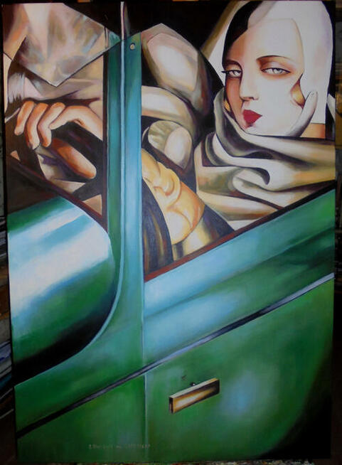 Kopia obrazu Tamary Łempickiej "Autoportret w zielonym bugatti" wykonana przez Andrzeja Masianisa absolwenta Wydziału ...