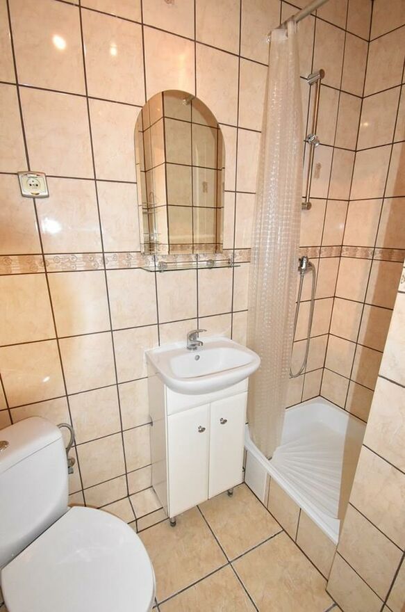 Łazienka: prysznic, umywalka z szafką, toaleta