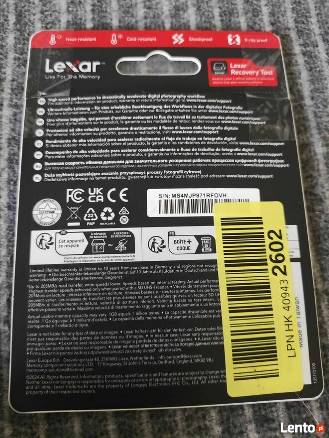 Zbudowany z myślą o trwałości – odporny na zużycie, upadek, temperaturę, promieniowanie rentgenowskie, wstrząsy, magnesy i wibracje, dzięki czemu możesz zabrać srebrną kartę SD Lexar w dowolne miejsce.