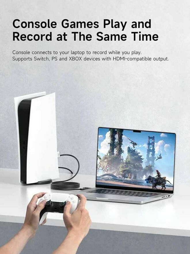 Szerokie zastosowanie: Ta karta do przechwytywania wideo może jednocześnie przechwytywać wideo i audio oraz przesyłać sygnały audio i wideo do komputerów lub smartfonów w celu podglądu i przechowywania. Obsługuje Windows 11/10/8.1/7, MacOS, Linux i telefony/tablety. Ta karta do przechwytywania bez wysiłku transmituje rozgrywkę na żywo z Switch, Switch 2, PS4/PS4 Pro/PS5 (wyłącz tryb HDCP), Xbox Series X i Meta Quest 3/2 bezpośrednio na iPada, laptopa lub PC. W pełni obsługuje OBS Studio, XSplit, PotPlayer, QuickTime Player. Uwaga: Przełącznik / Xbox / PS5/ PS4 działa dobrze, gdy HDCP jest wyłączony