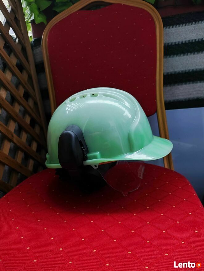 Kask Budowlany Ochronny Nauszniki Słuchawki Okulary ochronne dla piłkarzy.Nowy.