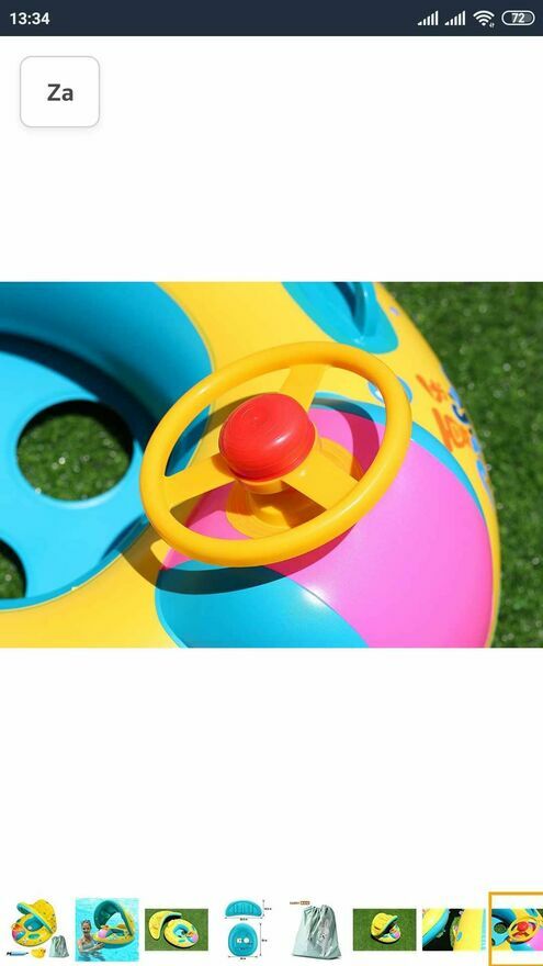 Dmuchany fotelik do pływania dla niemowląt i dzieci, wyposażony w zdejmowany daszek chroniący przed słońcem.