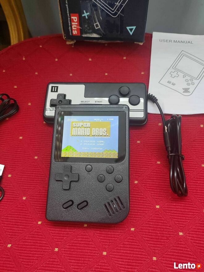 Zestaw zawiera również kabel USB do ładowania konsoli oraz pad, który umożliwia grę dwóm osobom.