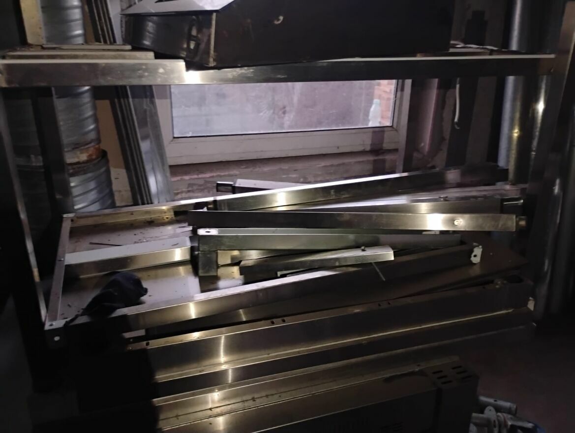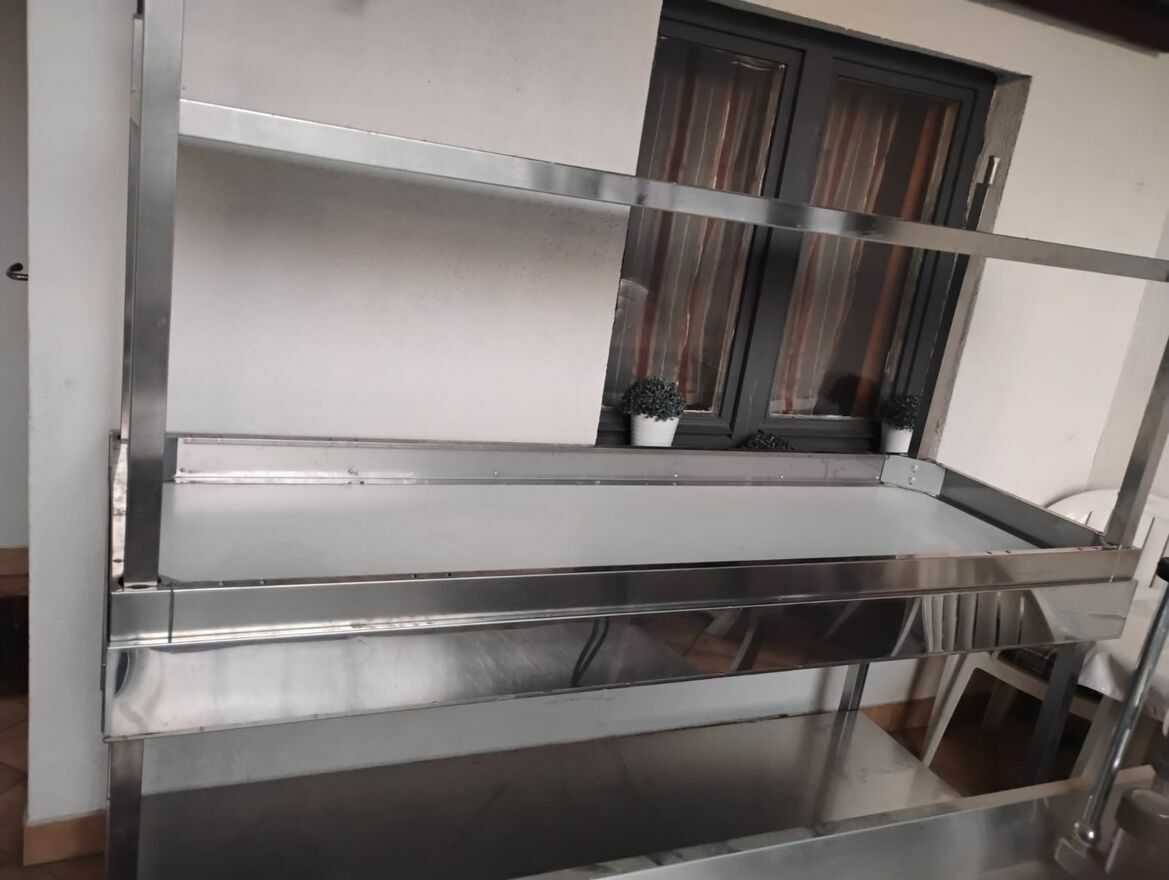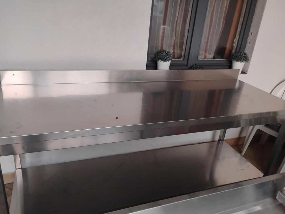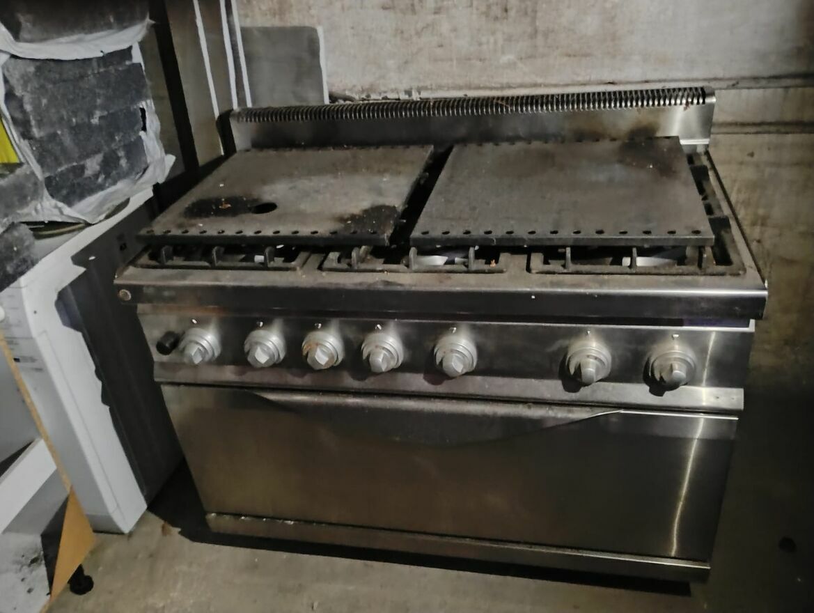 Kuchnia Gastronomiczna zlozona z wielu elemntow. 6 stolowwgastronomicznych, Piec do pizzy, suszarka do naczyn, piec do gotowania, stol z szafa doserwowania…,itd.Kuchnia jest na gaz