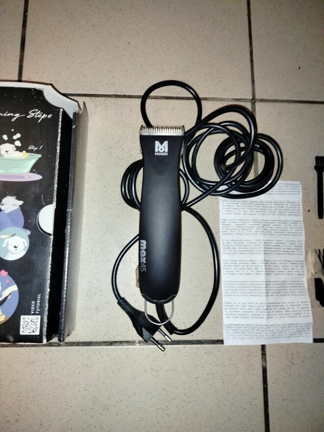 Witam serdecznieMam do sprzedania używaną lecz w bardzo dobrym stanie profesjonalną maszynkę do strzyżenia zwierząt firmy MOSER MAX 45 ( Type : 1245 ) ..220 - 240 V ~ 50/60Hz 45W Made in Germany..Kabel o długości 2.5m ..Najpopularniejsza maszynka do strzyżenia włosów firmy Moser..Maszynka dobrze leży w dłoni i doskonale sprawdzi się w codziennej pracy..MOSER Professional Black przestawia jedną z najnowocześniejszych maszynek linii profesjonalnej..Sprzęt dedykowany zarówno salonom fryzjerskim jak i użytkownikom domowym, którzy cenią jakość ponad wszystko. Nowoczesne ostrze szlifowane diamentowo zapewnia równe i szybkie cięcie..