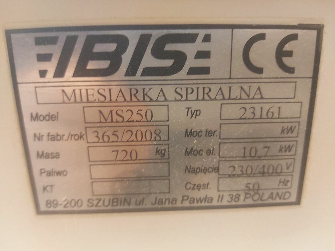 Miesiarka spiralna do ciasta IBIS MS 250 + 2 kotły. 43000 zł