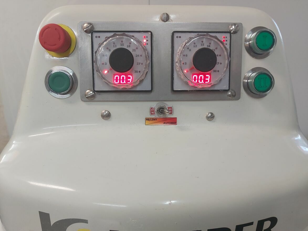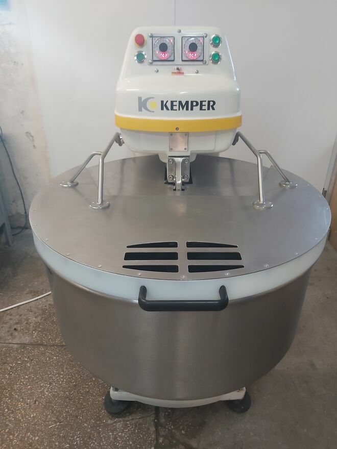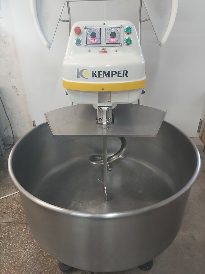 KEMPER,mieszarka spiralna,model SPL100,(240 litrów,max.160 kg ciasta).Urządzenie po remoncie:nowa elektryka,zegary,lakier,etc. Miesiarka posiada 2 prędkości pracy,praca w trybie MANUAL(bez zegarów) lub AUTO ( z zegarami ),wyłącznik bezpieczeństwa STOP,osłona kotła z wyłącznikiem krańcowym,mobilna-na kołach.Wystawię FV (+23% do ceny sprzedaży).Preferuję kontakt telefoniczny.