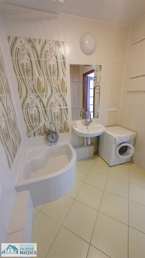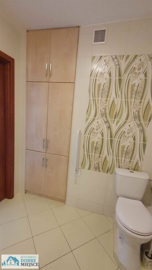 - łazienki z toaletą, w której znajduje się pralka, jest też dużo miejsca na przechowywanie rzeczy (wbudowane szafki do sufitu),