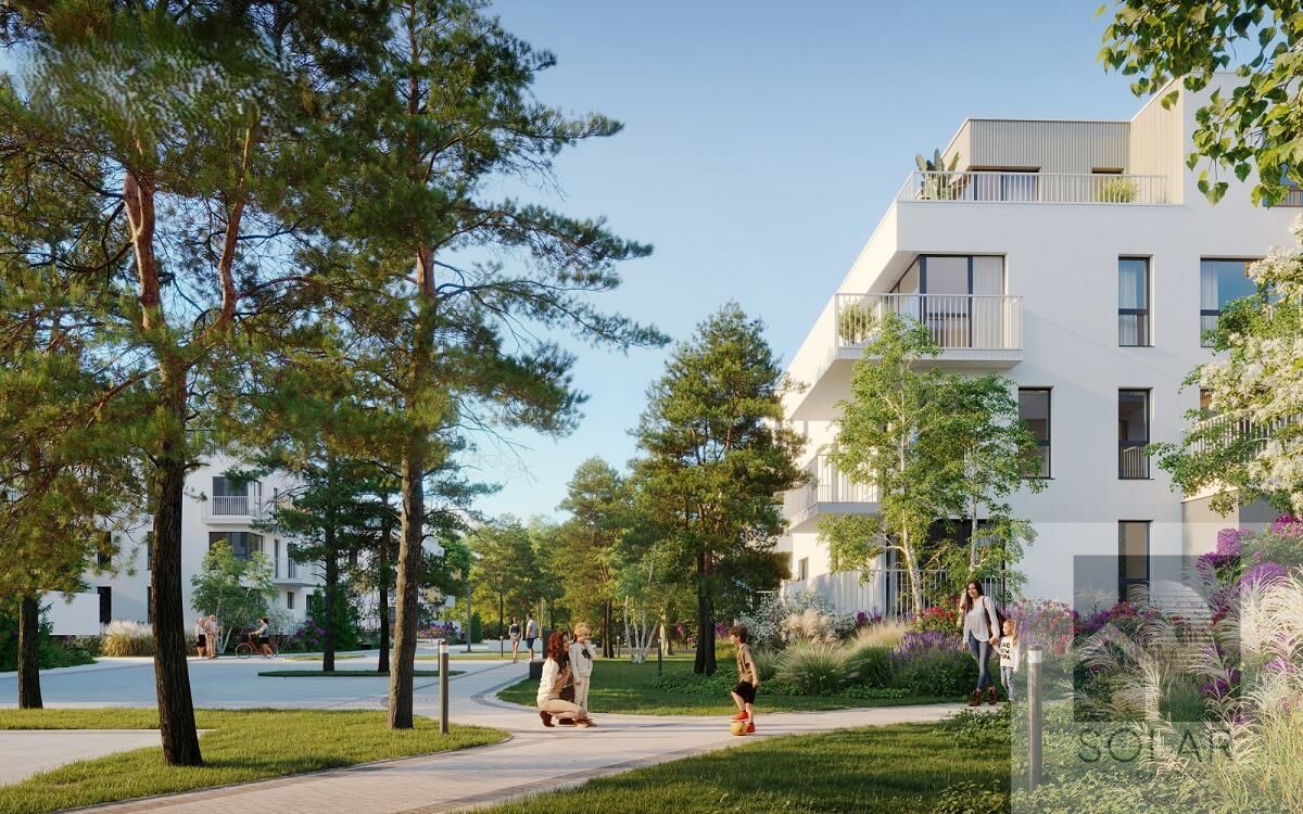 W części wspólnej przewidziano starannie zaprojektowaną zieleń oraz przestrzeń sprzyjającą integracji mieszkańców - place zabaw, ścieżki spacerowe, strefy relaksu z ławkami i nasadzeniami.