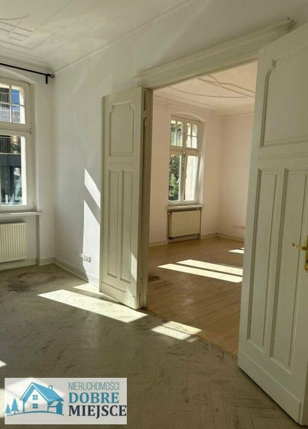 Wnętrze zachowało wiele z oryginalnych elementów - drewniane podłogi, stylowa stolarka drzwiowa i wysokie sufity , które nadają przestrzeni elegancji i klasy. To idealna baza do stworzenia wyjątkowego miejsca - zarówno do zamieszkania, jak i do prowadzenia pracowni artystycznej, kancelarii czy biura z prestiżowym adresem.