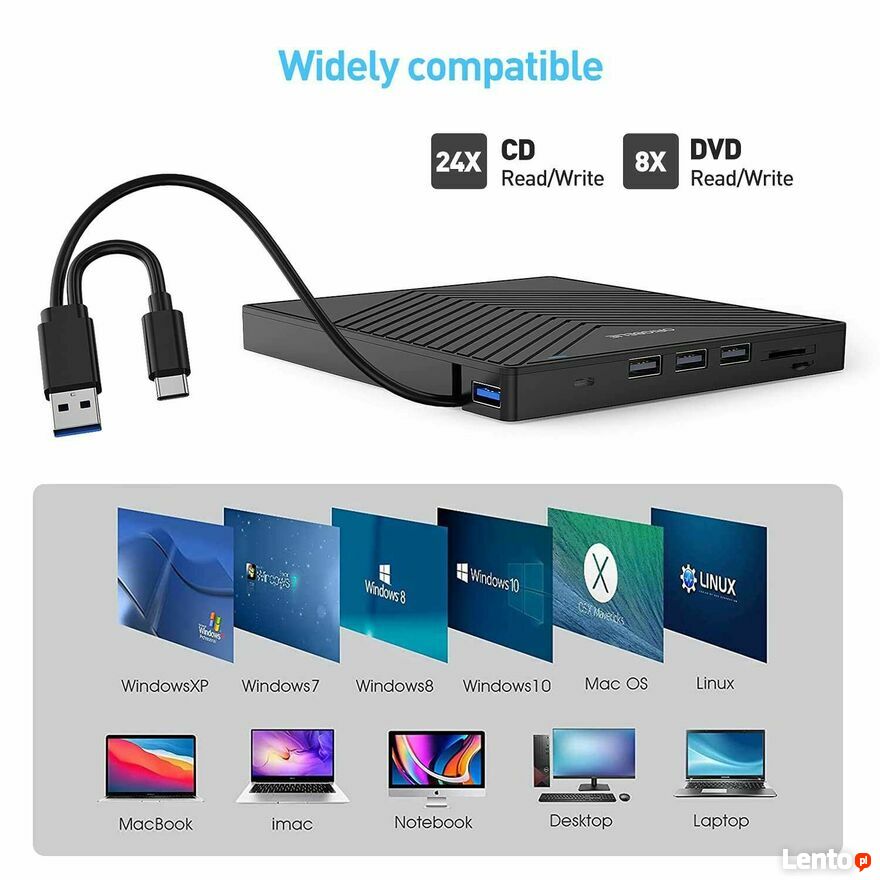 Nagrywarka DVD CD zewnętrzna napęd DVD-ROM USB-C SD USB 3.0 Napęd optyczny do komputera PC Laptopa.Nowa.