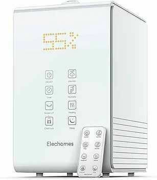 Elechomes SH8820 Ultradźwiękowy nawilżacz powietrza 5,5 l do pomieszczeń o pojemności 5,5 l, ciepły i chłodny nawilżacz z pilotem zdalnego sterowania i monitorem wilgotności, podwójne dysze 360st