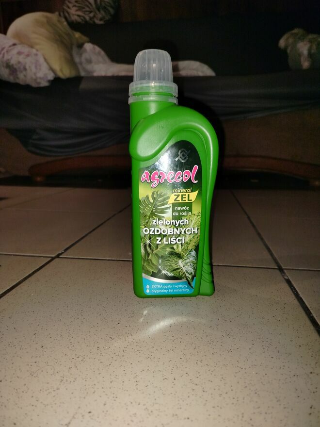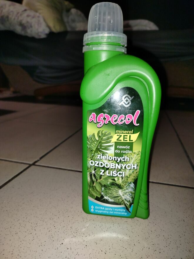 *Nawóz / żel do roślin zielonych ozdobnych z liści z serii Mineral marki AGRECOL.. Nawóz może być stosowany do zasilania gatunków takich jak fikusy, monstery, filodendrony, strelicja królewska, zamiokulkasy i wiele innych..
