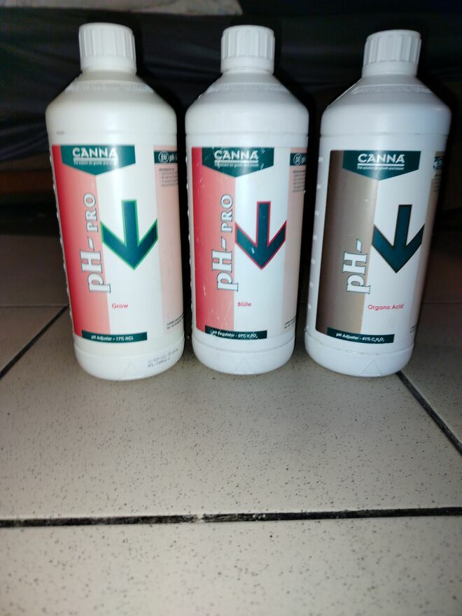 *CANNA pH- Bloom ( kwitnienie ) ...Dodawać regulator pH do zbiornika z odżywką w bardzo małych dawkach (5 ml), sprawdzając wartość poziomu pH do czasu osiągnięcia pożądanego poziomu pH (5,2-6,4)