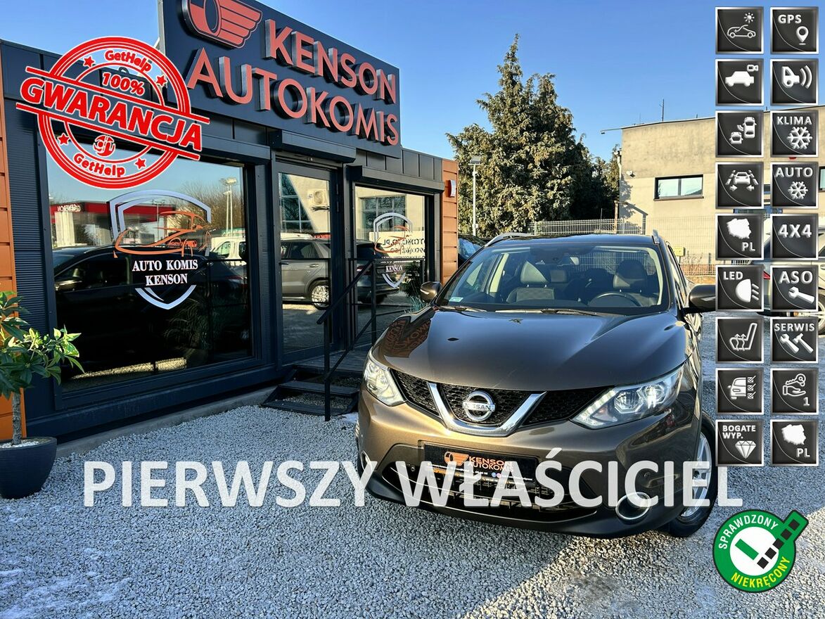 Nissan Qashqai 4x4, Salon PL, 1-Wł, Bezwypadek, HAK, TEKNA, Kamera 360, Grzane Fotele