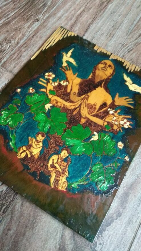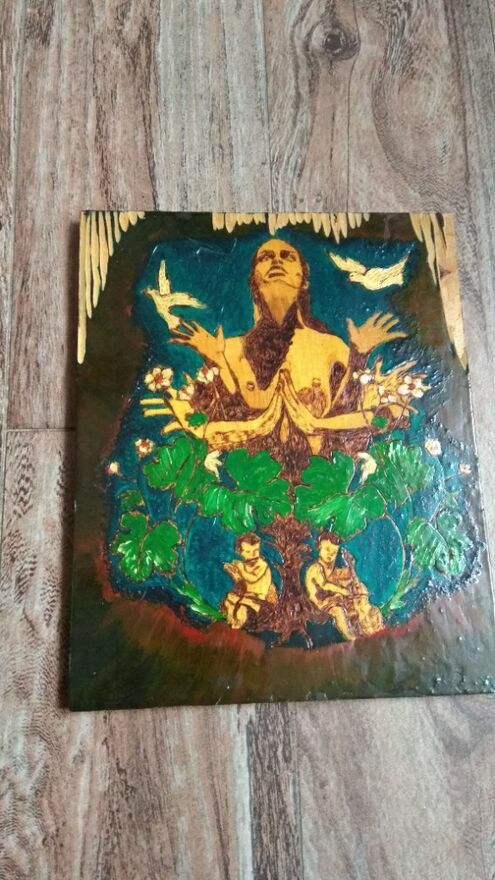 Obraz wykonany na zamówienie.Technika mieszana.