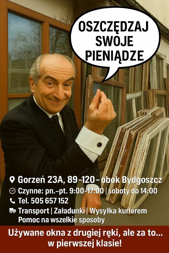 CHCESZ TANIO ZROBIĆ REMONT LUB BUDOWĘ NIE RUJNUJĄC BUDŻETU TO ZAPRASZAMY NA JEDEN Z WIĘKSZYCH SKŁADÓW UŻYWANEJ STOLARKI W POLSCE PÓŁNOCNEJ . NASZ ADRES GORZEŃ 23A 89-120 OBOK BYDGOSZCZY CZYNNE OD 9-17.00 W SOBOTE DO 14.00 505/657/152 LUB 509/789/120 TRANSPORT I WYSYŁKI KURIEREM TEŻ ROBIMY, WIĘC ZAPRASZAMY I PROSIMY TYLKO DZWONIĆ NIE ODPOWIADAMY NA POCZTĘ . CENY OKIEN OD 150 ZŁ W GÓRĘ I MASZ ZAPEWNIENIE NA PRZEGLĄD SPRAWDZENIE ORAZ REGULACJĘ OKIEN, KTÓRE TO JEST PRZEZ NAS GWARANTOWANE .Sprawdź zainteresowanie tym ogłoszeniem