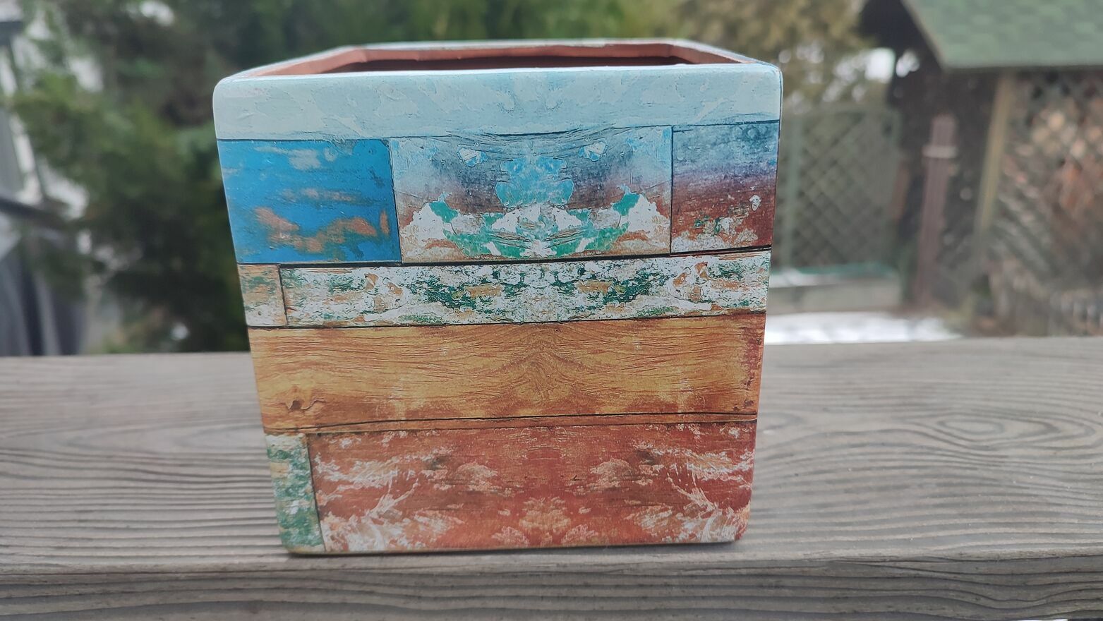 Osłonki na doniczki gliniane. Komplet 4sztNa zewnątrz kolorowy druk na PCV