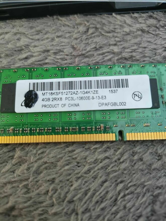 Pamięć RAM typu DDR3L o pojemności 4 GB, wyprodukowana przez firmę Micron.