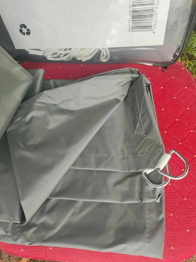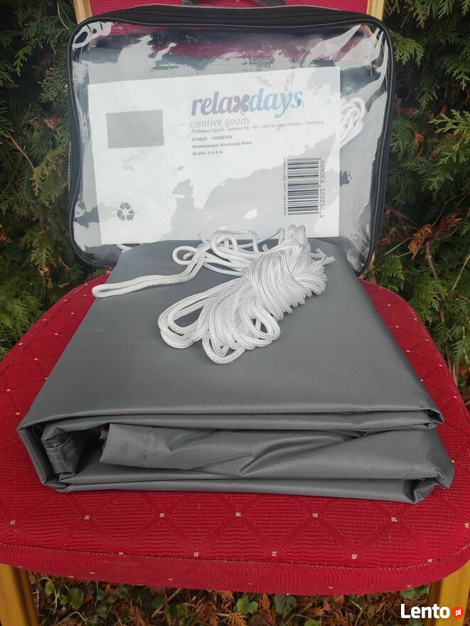 Nowy, wodoodporny i przeciwdeszczowy plandekowy pokrowiec na łódź lub żagiel. Produkt marki Relaxdays, wykonany z trwałych materiałów, zapewnia ochronę przed słońcem i deszczem. Idealny do zastosowań na zewnątrz.Nowe.
