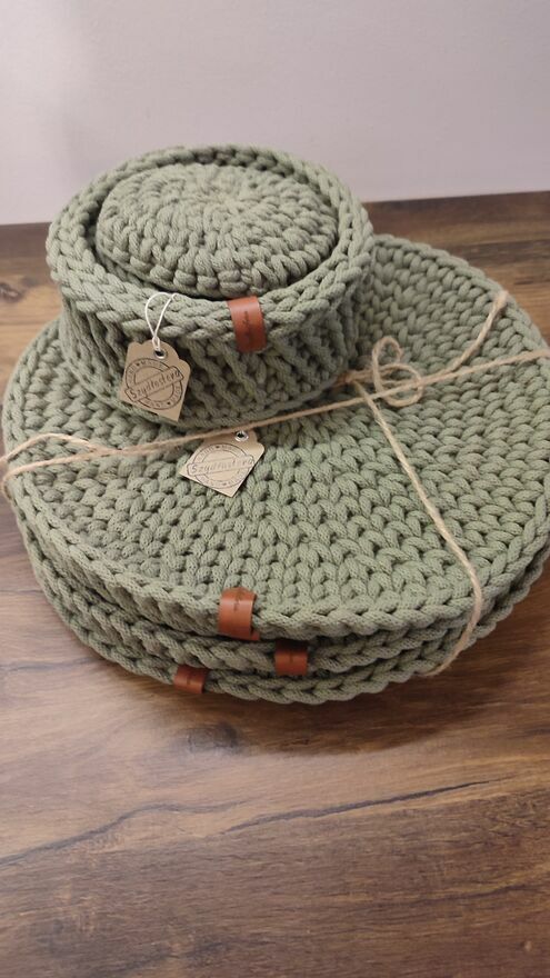 Piękne i stylowe podkładki.Podkładki wytworzone ręcznie ze sznurka bawełnianego.