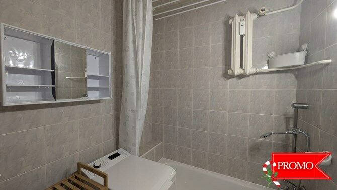 Łazienka: pralka, wanna, umywalka, lustro, osobne WC