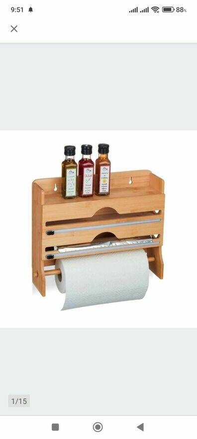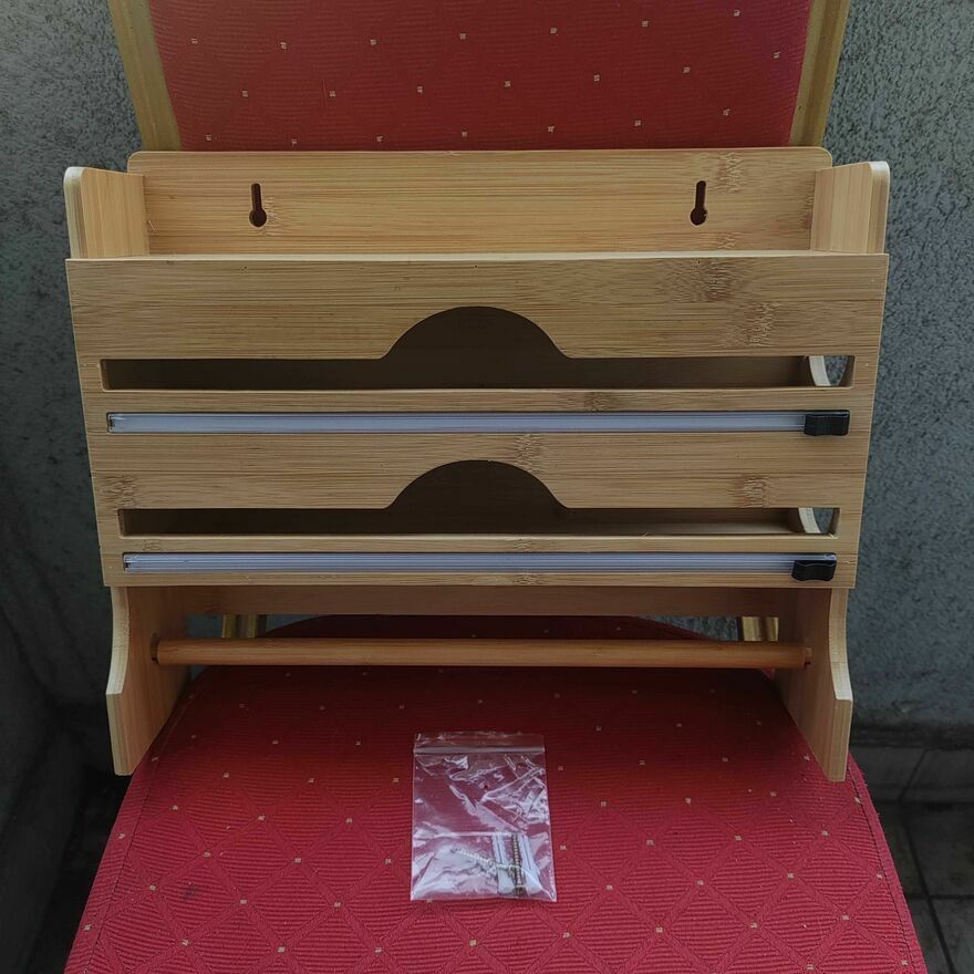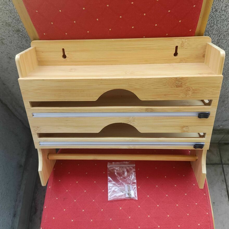 Półka na Przyprawy podajnik dyspenser do folii ręcznik papierowy z drewna bambusowa z bambusa drewniana.