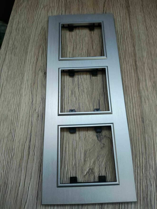 Potrójna ramka srebrna aluminiowe maskująca do włącznika elektrycznego.Nowa.