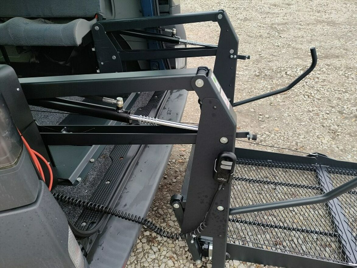 Miejsce dla inwalidy obok siedzenia kierowcy, profesjonalny podjazd plus mocownie wózka inwalidzkiego