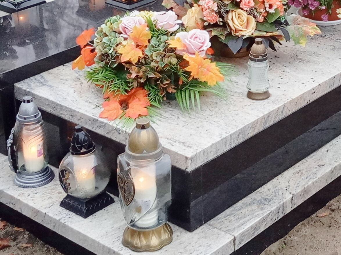• Sprzątanie płyty grobu (liście, stare znicze, porządki)