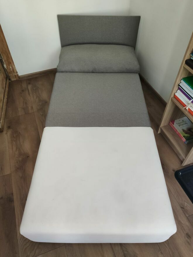 Przedmiotem ogłoszenia jest jednoosobowe rozkładane łóżko, które w ciągu dnia może funkcjonować jako fotel. Jest idealne do przenocowania jednej osoby kiedy ktoś przyjedzie w gości. Było użyte jeden raz, nie nosi śladów użytkowania. Cena: 200 zł. Zapraszam do kontaktu telefonicznego: 607 - pokaż numer telefonu - .Sprawdź zainteresowanie tym ogłoszeniem