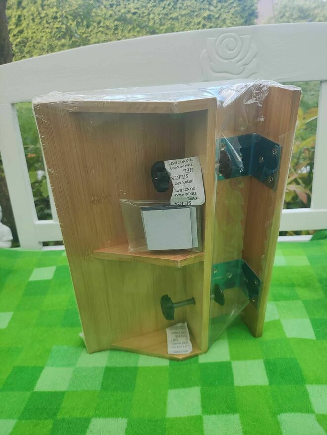 Praktyczna drewniana bambusowa szafka nocna z tacką. Idealna jako organizer na biurko lub stolik nocny. Wykonana z wysokiej jakości materiałów, zapewnia wygodne przechowywanie przedmiotów codziennego użytku.